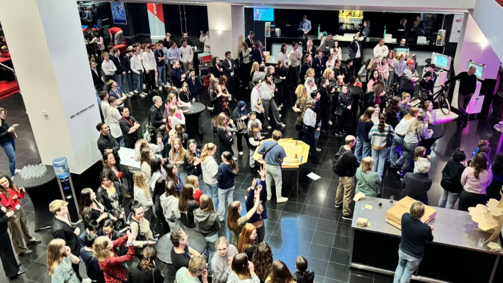 Na afloop worden alle gehuldigden ontvangen in de lobby. Ik loop naar beneden om de organisatie te bedanken. Onderweg word ik overladen met mooie woorden. Mensen willen weten wie de backdrops en visuals had gemaakt en ze zijn verbaasd te horen dat het mijn eigen creatie is. Het is een hartverwarmend gevoel. Dan zie ik een groep kinderen en kan ik het natuurlijk niet laten om ze uit te
