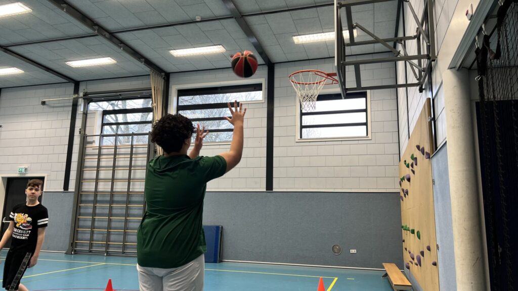 Ik mag twee keer les geven op het Voortgezet Speciaal Onderwijs De Lasenberg in Soest. Voor wie niet bekend is met het speciaal onderwijs: dit type onderwijs is bedoeld voor jongeren die moeilijker leren. Door de ‘kleine klassen’ (weinig leerlingen), is de begeleiding intensief. Er wordt veel aandacht besteed aan praktijkvakken en het ontdekken waar je goed in bent. In dit kader mag ik basketbal-les geven. Met een tijdblok van vijf uren is eigenlijk een workshop te noemen. Soest is best een eindje rijden, dus ik vertrek vroeg.